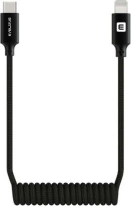 Evelatus AutoSpring Coiled Cable USB C to Lightning connector 1.2M black cable