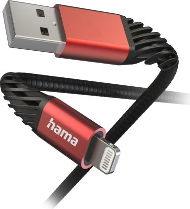 Hama 00201538 Extreme Charging Cable USB-A - Lightning 1.5m Nylon black/red