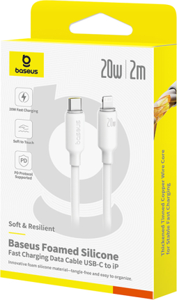 Kabelis USB C - IP Lightining 2m 20W putu silikona balts BASEUS