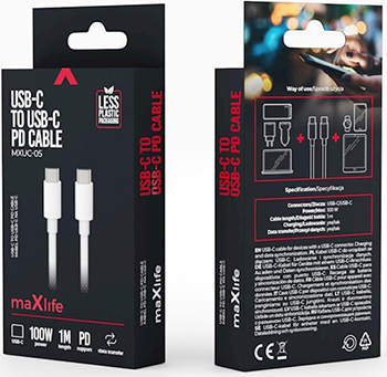Maxpower Type-C to Type-C Cable 100W 1m MXUC-05 By Maxlife White