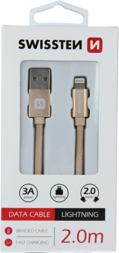 Качественный текстильный дата-кабель USB/Lightning длиной 2,0 м. Усиленный кабель обеспечивает более высокий ток (до 3 А) и поддерживает быструю передачу данных со скоростью 480 Мбит/с. Упакован в розничную упаковку Swissten.
