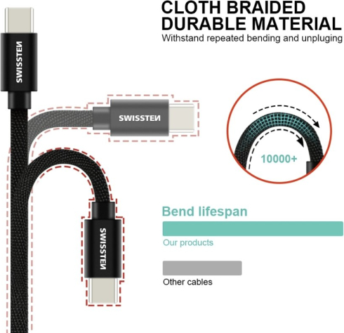 Swissten Textile Fast Charge 3A USB-C / USB-C Кабель для передачи данных и зарядки 1.2m