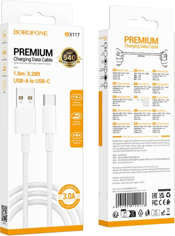 USB кабель Borofone BX117 USB-A to USB-C 1.0m белый