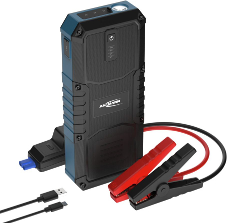 ANSMANN Jump Starter 16.0 - компактный 12-вольтовый прыжковый стартер с Powerbank и светодиодным фонарикомANSMANN Jump Starter 16.0 - это мощный и портативный 12-вольтовый прыжковый стартер, предназначенный для экстренного запуска автомобиля и повседневной надежности. Он сочетает в себе надежную стартерную батарею, многофункциональный powerbank и светодиодный фонарь в одном компактном устройстве - идеальном для автомобилей, мотоциклов, лодок и многого другого.