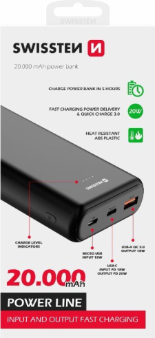 Swissten Line Power Bank Переносная зарядная батарея USB / USB-C / Micro USB / 20W / 20000 mAh