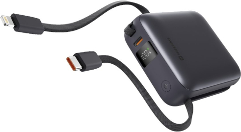 Компактная мощность и стиль Несмотря на небольшой размер, этот внешний аккумулятор обеспечивает выходную мощность до 22,5 Вт через порт USB-C и кабель, обеспечивая быструю и надежную зарядку смартфонов, планшетов и других устройств. Встроенный кабель Lightning обеспечивает мощность до 12 Вт, что идеально подходит для быстрой зарядки iPhone и других продуктов Apple.