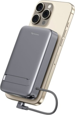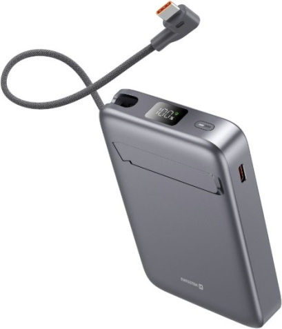 Встроенный кабель USB-C и складная подставка Корпус внешнего аккумулятора оснащен практичным кабелем USB-C длиной 15 см, который всегда готов к использованию. Складная подставка позволяет удобно просматривать информацию на экране во время зарядки.
