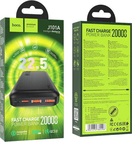 Внешний аккумулятор Power Bank Hoco J101A PD 20W+Quick Charge 3.0 22.5W 20000mAh черный