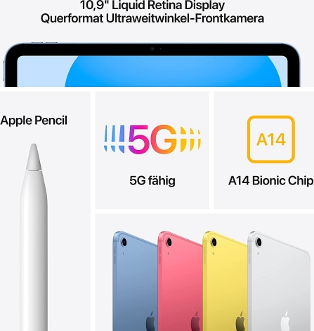 Apple iPad 64GB, tablet PC (yellow, 5G, Gen 10 / 2022)