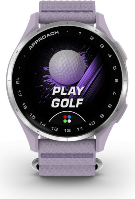 Garmin Approach J1 Silver aluminium bezel with lilac ComfortFit fabric ban