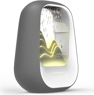 Create a cozy, relaxing atmosphere in your home with the multifunctional wireless sleep and relaxation speaker Reach Relaxing Rain. It combines a night lamp, a soothing water/drop effect, music playback, and aromatherapy in one modern device.