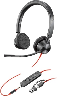 HP Poly Blackwire 3325 Stereo USB-C Headset +3.5mm Plug +USB-C/A Adapter