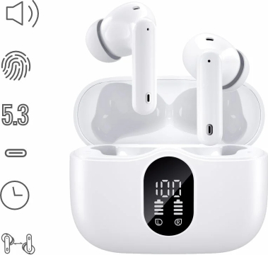 Технические данные Тип наушников: Беспроводные Конструкция: вкладыши Передача сигнала: Bluetooth Дальность: 10 м Микрофон: Да Громкость: Да Дополнительные функции: Игровой режим, Активное шумоподавление, Шумоподавление окружающей среды Частота: 20-20000 Гц Активное шумоподавление: Да Время ожидания: минимум 140 часов Время автономной работы: до 6 часов при 50% громкости Источник питания: 5 В 1 А USB-C Материал: пластик Размеры (Ш х В х Г), см: 6.2 x 4.8 x 2.57 Вес продукта: 48 г