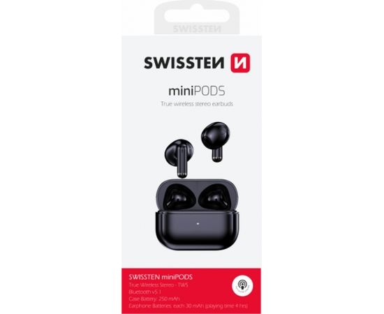 | Элегантные Bluetooth-наушники TWS SWISSTEN miniPODS для прослушивания музыки со встроенным микрофоном для совершения звонка. Упакован в розничную упаковку SWISTEN.