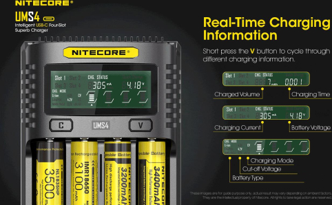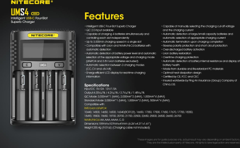 With safety and convenience at the forefront of this design, the Nitecore UMS4 features anti-short circuiting, reverse polarity protection and an energy saving function when there has been no action in 3 minutes.