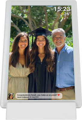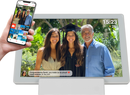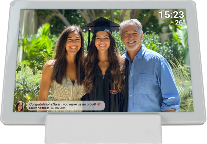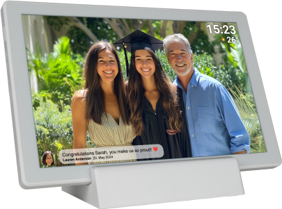 Потрясающий дисплей и большой объём памяти Оживите любимые воспоминания на ярком 10,1-дюймовом сенсорном HD IPS-экране с разрешением 1280 × 800 и 16 ГБ встроенной флеш-памяти. Удобная и заряжаемая Аккумулятор ёмкостью 3000 мА·ч обеспечивает длительное время работы, а входящая в комплект зарядная подставка служит стильной подставкой для удобства использования. Извлеките её из подставки и просматривайте фотографии, удобно расположившись. Интеграция с социальными сетями FRAMEO Отправляйте фотографии и видео прямо со смартфона с помощью предустановленного приложения FRAMEO — идеальное решение для обмена моментами с семьёй и друзьями в режиме реального времени. Настраиваемая и удобная для пользователя Добавляйте подписи, управляйте друзьями и управляйте настройками отображения прямо с сенсорного экрана. Задавайте интервалы поворота фотографий и используйте таймер для отключения рамки на ночь. Расширенные возможности просмотра Цифровая фоторамка FRAMEO предлагает удобный и интерактивный способ наслаждаться воспоминаниями и делиться ими — идеальное дополнение к любому современный дом.