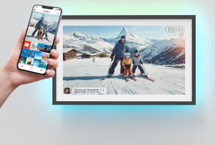 Потрясающие изображения и большой объём памяти Демонстрируйте свои воспоминания на 10,1-дюймовом сенсорном IPS-экране с разрешением 1280x800. Благодаря 16 ГБ флеш-памяти вы можете сохранить тысячи фотографий прямо на рамке. Легкая отправка фотографий Предустановленное программное обеспечение FRAMEO позволяет легко отправлять фотографии и видео со смартфона прямо на фоторамку — идеальное решение для связи с близкими. Уникальный опыт общения в социальных сетях FRAMEO позволяет сотням друзей делиться фотографиями и видео прямо на вашей рамке, дополняя их личными сообщениями, что делает общение ещё более значимым. Полный контроль под рукой Управляйте списком друзей, удаляйте и добавляйте пользователей, а также устанавливайте интервалы смены фотографий (от 10 секунд до 30 минут) — всё это прямо с интуитивно понятного сенсорного экрана. Удобные и интеллектуальные функции Используйте встроенный таймер для автоматического отключения рамки на ночь, чтобы она работала только тогда, когда вам нужно.