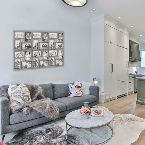 Серый цвет Материал: пластик Количество фотографий для развешивания: 24. Максимальный размер фотографии: 10х15см. Размер фотографии, видимый снаружи: 9х13,5 см. Общий размер: 86х57 см. Установка: горизонтальная и вертикальная.