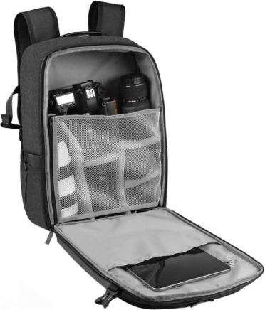CapaciousPuluz PU5018B will hold everything you need for taking photos. You will successfully store in it a camera, max. 6 lenses, flash, 14" tablet, smartphone, water bottle, tripod and much more. What's more, special compartments will allow you to organize your accessories and keep things neat and tidy.