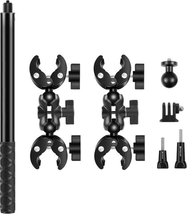 The clamp of the holder can support handlebars or poles with a diameter range of 1.5 to 4.5 cm, making it universal and suitable for different types of vehicles. The universal ball head design of the bracket allows you to adjust different shooting angles, allowing you to customize your camera position. This will allow you to seamlessly capture dynamic moments.