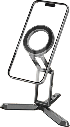 PULUZ PU3223B Phone Holder BlackPULUZ PU3223B is a MagSafe (Magnetic Safety, a magnetic mounting system) folding magnetic holder designed for iPhone users. It combines a compact design, stable construction and wide adjustability, making it the ideal accessory for office, home, travel and content recording. With its sturdy base and aluminum alloy housing, it guarantees secure support in any position. The set also includes a magnetic ring.