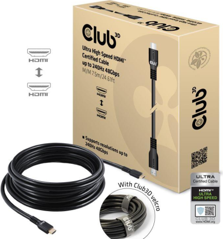 Ultra High Speed HDMI™ up to 240Hz 48Gbps Certified Cable M/M 7.5m/24.61ft. Manufacturer Website: https://www.club-3d.com/en/detail/2657/ultra_high_speed_hdmit_up_to_240hz_48gbps_certified_cable_m-m_7.5m-24.61ft/ | ||||||||||||||||||||||||||