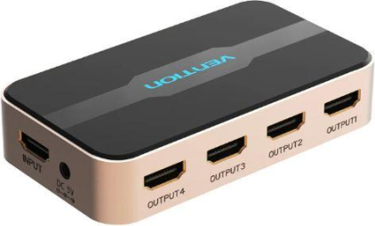 Vention 1 In 4 Out HDMI™ Splitter 4K@30Hz Gold Aluminum Alloy Type EU Standard. Manufacturer Website: https://ventiontech.com/products/hdmi-splitter-1-in-4-out-hd-4k-30hz-hdmi-switch-hdmi-1-4-1x2-1x4-adapter-with-power-supply-for-xbox-ps4-tv-hdmi-switcher?_pos=1&_psq=ACCG0&_ss=e&_v=1.0 | ||||||||||||||||||||||