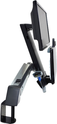 | Durable polished aluminum construction! Holds a monitor, bar-code scanner, keyboard, wrist rest and mouse on the same arm, providing easy, single-motion height adjustment. Work sitting or standing with the arm’s ergonomic 25" (64 cm) LCD height adjustment range. A unique cable management system conceals and organizes cords, making cleaning easy. Benefits - Flexible, open-architecture design is scalable for future computer equipment - Comfortable, ergonomic data entry—work sitting or standing with 20" (51 cm) single-motion lift adjustment - Five-inch (12.7 cm) independent LCD height adjustment ergonomically accommodates individual users - Easy-to-clean Featuress promote superior infection control - Barcode scanner holder provides easy access to hand-held scanner - Extend LCD and keyboard up to 39.75" (101 cm) from wall; fold equipment back out of the way when not in use. With keyboard in storage position, system depth is as little as 12" (30 cm) - Ergonomic back-tilt keyboard tray ensures wrists remain in a neutral position during data entry; keyboard tray pulls out when needed and stows inside worksurface - Maintains the relative position of screen and keyboard throughout full range of motion - Clean, concealed and neat routing of cables through the expansive cable management system Packaging information Manual Yes Package width 648 mm Package depth 282 mm Package height 561 mm Package weight 14100 g Ergonomics Swivel angle range 0 - 360 ° Turn angle 360 ° Tilt angle -30 - 30 ° Design Colour of product Aluminium Material Aluminium, Plastic Mounting Maximum weight (capacity) 13.2 kg Maximum screen size compatibility 24 " VESA mounting interfaces 75 x 75, 100 x 100 mm | ||||||||||||||||||||||||