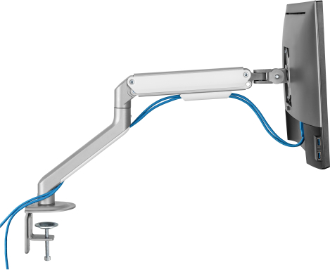 | Технические данные Тип крепления: Настольный Рекомендуемый размер экрана: 17–32 дюйма (43–81 см) Максимальная нагрузка (кг): 9 кг (на монитор) VESA: 75х75, 100х100 Вертикальный наклон: от +55° до -55° Поворот: от +90° до -90° Поворот экрана: от +180° до -180° Регулировка уровня: Нет Диапазон стрелы (мм): 453 Уровень: Нет Для изогнутых экранов: Да Кабель-менеджмент: Да Съемная пластина VESA: Да Установка: зажим/прокладка (рабочий стол) Цвет: Серебристый Материал: Сталь, алюминий, пластик. Монтажные размеры: Зажим: 10–80 мм / Прокладка: 10–40 мм. Размеры (мм): 117 x 503 x 578 |