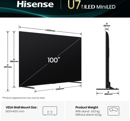 TV Set HISENSE 100U7Q 100" 4K Ultra HD ULED