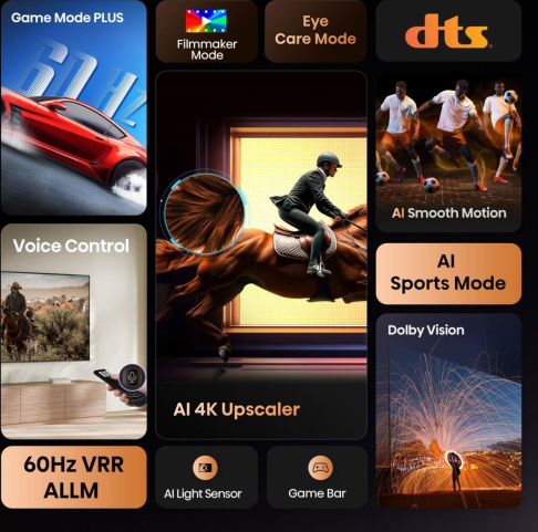 Hisense technologies (AV/TV) 4K AI Upscaler/Game Mode Plus/MEMC (Motion Estimation Motion Compensation)/Quad Core 4k Processor