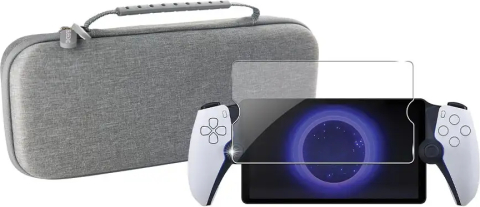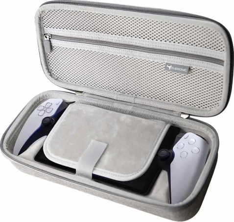 Футляр из легкого и прочного материала EVA Внутренняя часть отлита по форме консоли Сетка для хранения аксессуаров Ручка для переноски Комплект защиты экрана: 1 защитное стекло для экрана (твердость 9H) 1 набор для чистки с чистящим средством