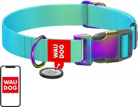Nylon collar with QR code for Waudog gradient dog, blue , size L