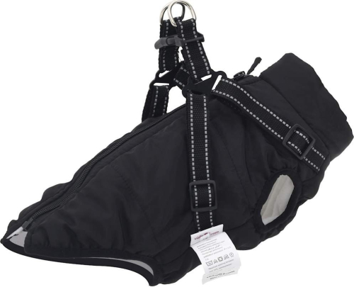 vidaXL Płaszcz dla psa z szelkami, wodoodporny, czarny, XL