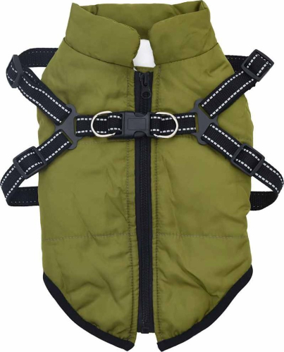 vidaXL Płaszcz dla psa z szelkami, wodoodporny, zielony, 2XL