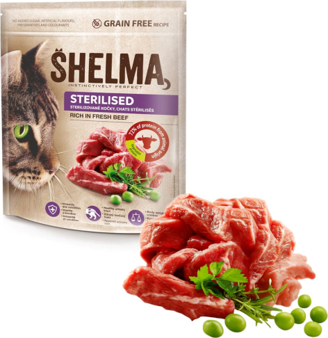 SHELMA Sterilised Rich in beef - dry cat food - 750g