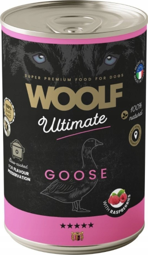 Paka Zwierzaka WOOLF PIES PUSZKA 400g ULTIMATE CAN GOOSE&RASPBERRY /6