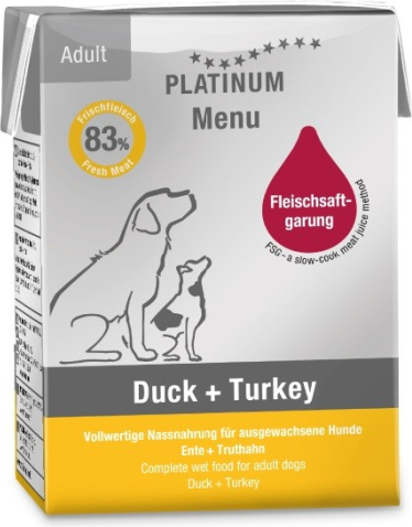 PLATINUM Menu Adult Duck+Turkey - wet dog food - 185g