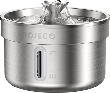 Stainless steel fountain / drinker for dog and cat 2l RojecoNow it's even easier to take care of your pet's healthy hydration! ROJECO fountain is a modern and hygienic solution for owners of cats and small and medium-sized dogs, which supports the health of your pet by providing constant access to fresh, contamination-free water. The fountain is convenient for both pets and their caregivers. Made of durable 304 stainless steel, it combines elegant design with functionality, and thanks to its 2-liter capacity, you won't need to refill it too often - just every 5-8 days.