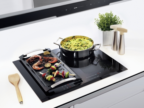 | Plūstoša kontrole, tieša piekļuve katram karsēšanas līmenim (iedalījums 14 līmeņos), sensoru vadība, taimeris, atgādinātājs, 4 indukcijas zonas, 'tilta' funkcija, automātiskā sakarsēšanas funkcija, vadības bloķēšanas iespējas, skaņas signālu izslēgšana, STOP&GO funkcija, slīpa priekšējā mala | ||||||||||||||||||||||||||||||||||||||||||||||||||||||||||||||||||||||||||||||||||||||||||||