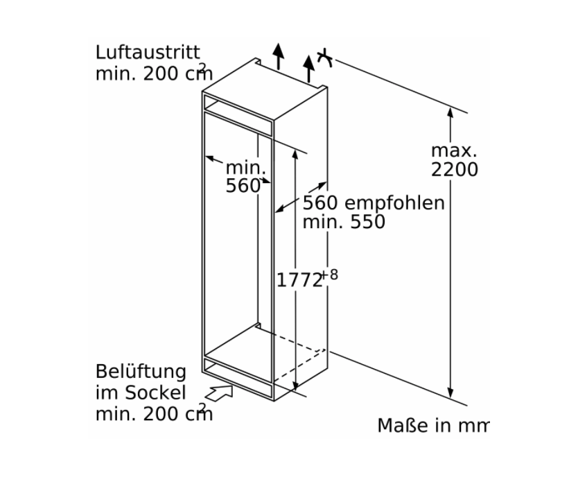 Nišas izmēri iegulšanai (HxWxD): 177,5x56x55 cm