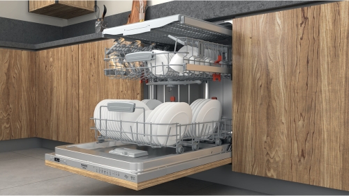 The Hotpoint Ariston HI 5030 WEF total integrated dishwasher measures 60 cm, has a total capacity of 14 place settings and has 6 washing programs and a flexiload system that gives you complete flexibility in the way in which the dishes are placed. STAINLESS STEEL INTERIOR - The basin of the Hotpoint dishwasher in stainless steel guarantees always shiny dishes. DELAYED START - The option of delayed start of the washing program for up to 24 hours allows you to start the dishwasher at any time of the day, even when you are away from home. INVERTER MOTOR - Thanks to its ability to vary the rotation speed, the innovative Inverter motor can specifically calibrate the water pressure and therefore the cleaning power, in combination with an electronic control optimized at all times. FLEXILOAD BASKETS - The dishwasher's unique Flexiload system gives you complete flexibility in the way you arrange your dishes. The configuration of the movable and removable parts of the basket is designed to maximize the internal space and facilitate the right layout of all your dishes, for impeccable results every time. ACTIVE 3D ZONE WASH - You can choose both the intensity and one of the three baskets to be used for washing, in this way the new Active 3D Zone Wash three-dimensional spraying system will provide 40% more cleaning power than a fully loaded cycle or, in case of some dishes to be cleaned, it will provide 40% more energy efficiency. |