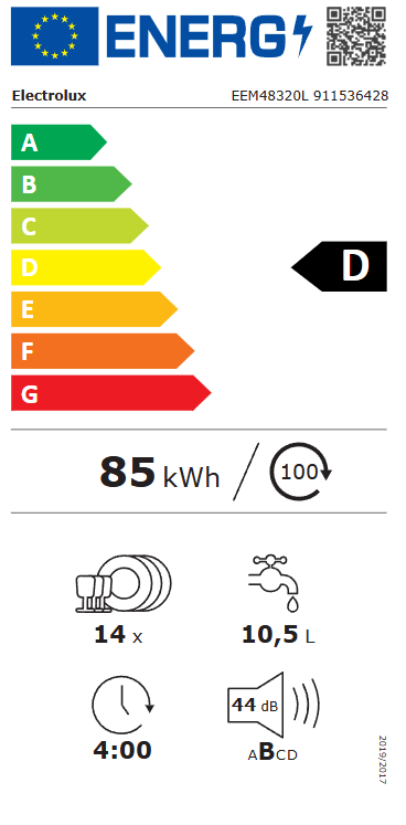 Enerģijas patēriņš / 100 cikli: 85 kWh