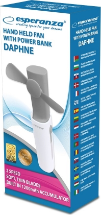 Compact, foldable Esperanza DAPHNE mini fan with built-in power bank.