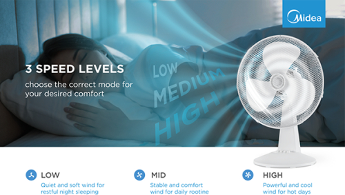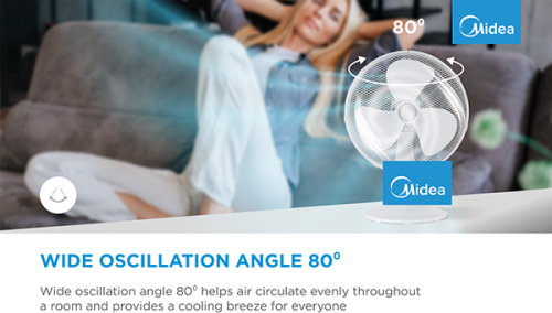 Midea Table fan, 40W, 40cm, 3 speeds, mechanical, noise level: 50-60 dB, Oscillation 80°, Tilting +24° -12°
