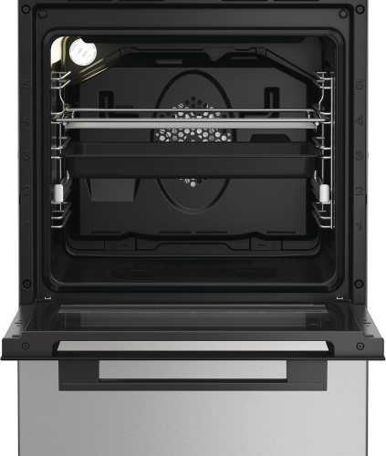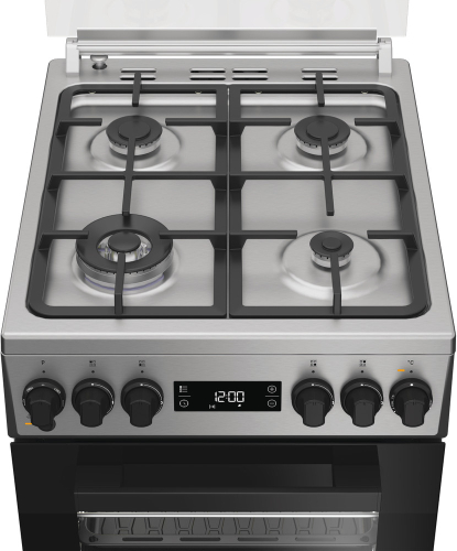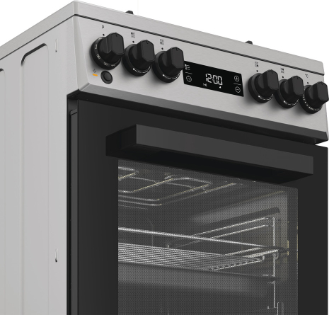 Gāzes virsma, stikla vāks, čuguna restes, precīzi iestatāma liesma, elektriska aizdedze, gāzes kontrole, dubultais deglis, ?Elektriska cepeškrāsns, tilpums 60L, 8 programmas, Steam+, ForcedAir, grils, displejs ar taimeri, piederumu atvilktne, kompl. 2 pannas un 1 reste, Hidrolīze, krāsa - INOX, jauns dizains; 85x50x60