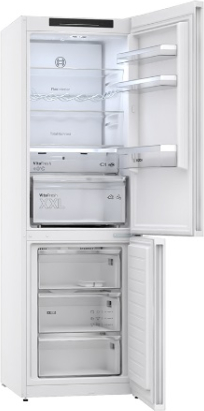 Brīvstāvošs ledusskapis ar saldētavu apakšā, 186 x 60 cm, balts. Energoefektivitāte: C klase. Kopējais tilpums : 321. Trokšņa līmenis 35 dB. Dzesēšanas nodalījuma tilpums 218l, saldētavas tilpums 103l. Elektroenerģijas patēriņš gadā: 159 kWh. Integrēts vertikāls rokturis. Spīdīga aizmugurējā siena ar Multi Airflow. VitaFresh XXL <0°C>: īpaši lielās ledusskapja atvilktnes ar klimata kontroli ilgāk saglabā ēdienu svaigu. Perfect Fit: novieto savu ledusskapi tieši pie sienas vai nišā. LED apgaismojums. Total No Frost. 2 dzesēšanas sistēmas. Funkcija Super Cooling. Elektroniska temperatūras regulēšana ar LED indikāciju. Brīdinājuma signāls par atvērtām durvīm: optisks un akustisks. 3 rūdīta stikla plaukti, no tiem 2 ar maināmu augstumu. Pudeļu plaukts. 3 durvju plaukti. 2 VitaFresh atvilktnes. 3 caurspīdīgas saldētavas atvilktnes. Durtiņu vēršanās puse: pa labi. Kājiņas ar maināmu augstumu priekšpusē, ritenīši aizmugurē.