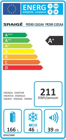| Snaige Refrigerator FR240-1101AA-00SNJ0A Free standing, Double door, Height 144 cm, A+, Fridge net capacity 166 L, Freezer net capacity 46 L, 39 dB, White | ||||||||||||||||||||||||||