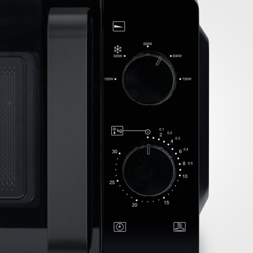 | Šī stilīgā mikroviļņu krāsns ir praktisks papildinājums jūsu virtuvei. Ar 700 W jaudu un 19 litru ietilpību tā ir ideāli piemērota ātrai uzsildīšanai. Manuālā regulēšana ar pogu padara to ērti lietojamu, un ar 30 minūšu taimeri jūs varat viegli pielāgot uzsilšanas laiku atbilstoši savām vajadzībām. Šī mikroviļņu krāsns ir ideāla izvēle tiem, kas novērtē vienkāršību un funkcionalitāti. Neatkarīgi no tā, vai jūs uzsildāt vakardienas pārtikas kasti vai baudāt svaigu popkornu filmu vakarā, šī mikroviļņu krāsns katru reizi nodrošina uzticamus rezultātus. Ar savu kompakto izmēru un eleganto dizainu šī mikroviļņu krāsns ir ideāli piemērota lielākajai daļai virtuvju. Modernā melnā krāsa piešķir tai mūžīgu estētiku, kas atbilst dažādiem stiliem un interjeriem. Šī mikroviļņu krāsns ir neaizstājams palīgs ērtai un efektīvai ēdiena gatavošanai. Ar tās lietotājam draudzīgo dizainu un uzticamo veiktspēju tā ir obligāta ikvienam, kas savā virtuvē novērtē gan kvalitāti, gan vienkāršību. |