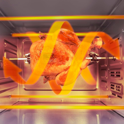 | 360º Roast: Includes a rotating rotisserie that allows you to roast chickens with 360º heat thanks to its rotating capacity; Double-glass door: Its high-strength double-glass door helps maintain the temperature More information: baketoast-3090-black-gyro (external link)  | ||||||||||||||||||||||||||||||||||||||||||||||||||